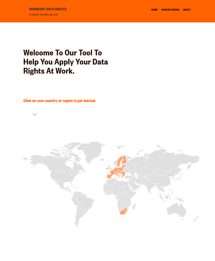 Interactive tool that brings your data rights to you as you map digital technologies at work